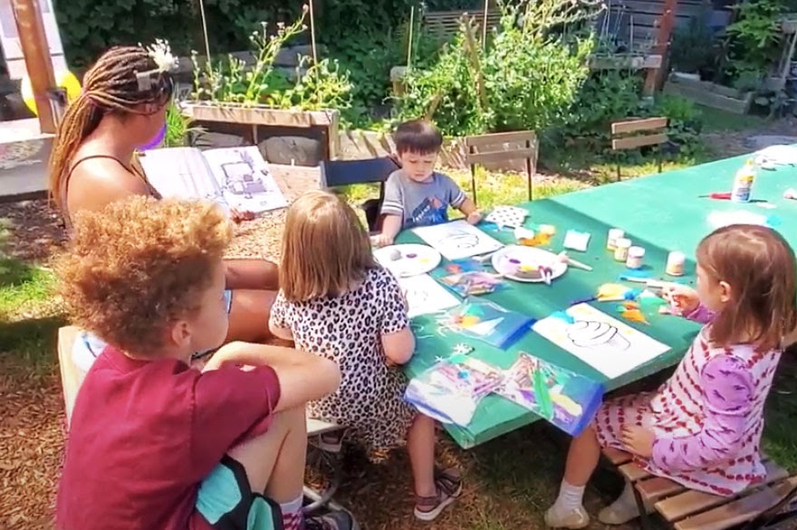 Over four Monday afternoons this past July, Aisha, Nikitha and Rakim hosted a series of storytime and activity sessions in the coFood Collaborative Garden in East Vancouver where diverse families could gather at a safe distance during COVID-19.