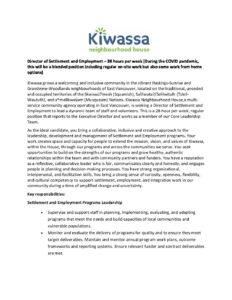 Director of Settlement and Employment Job Posting January 2021