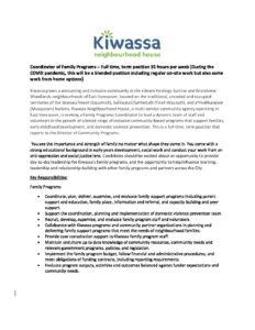 Job Posting – Family Programs Coordinator April 2021