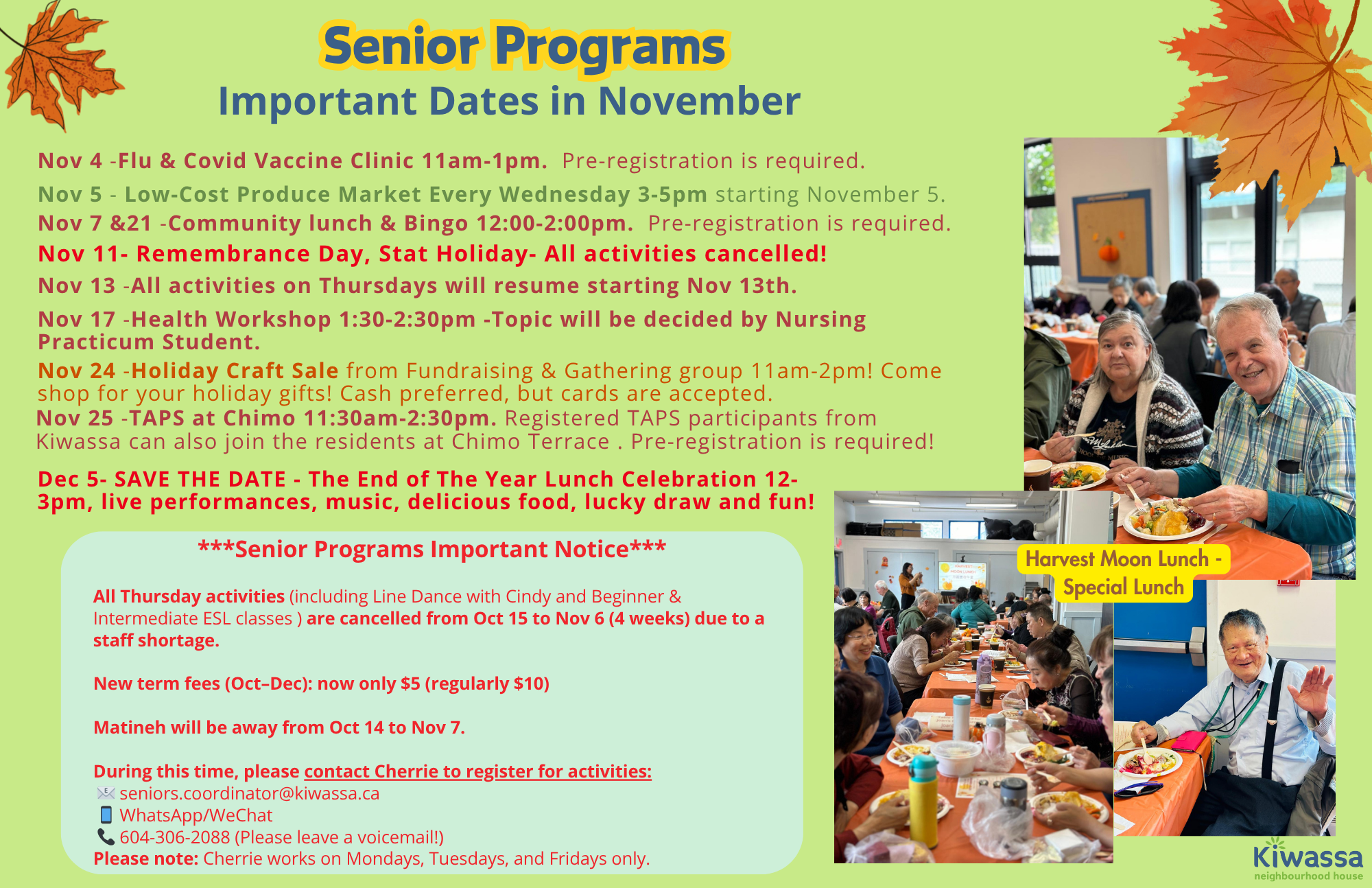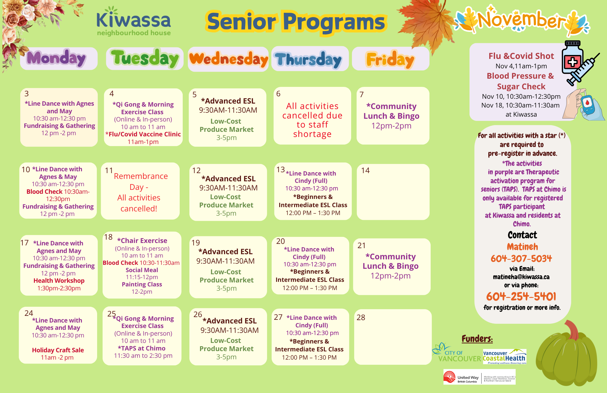 Registered TAPS participants from Kiwassa can also join the residents at Chimo Terrace. Pre-registration required. |